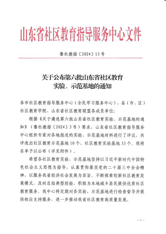 此次评选活动依据鲁社教指〔2024〕3 号文件精神,由山东省社区教育指导服务中心组织专家组,对各地申报材料进行了严格、细致的评审。齐鲁师范学院凭借出色的教育资源整合能力、创新的教育理念以及扎实的社区服务实践,历经层层筛选与激烈角逐,最终成功入选。