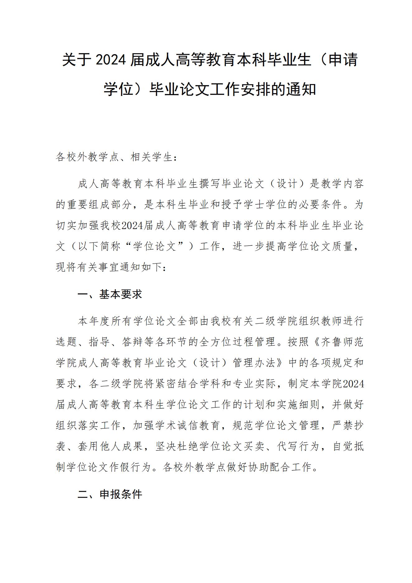 关于2024届成人高等教育本科毕业生(申请学位)毕业论文工作安排的通知
