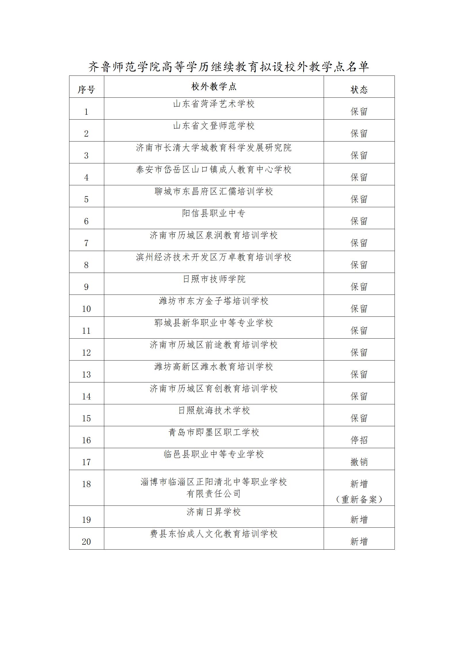 2025年齐鲁师范学院高等学历继续教育拟设校外教学点公示