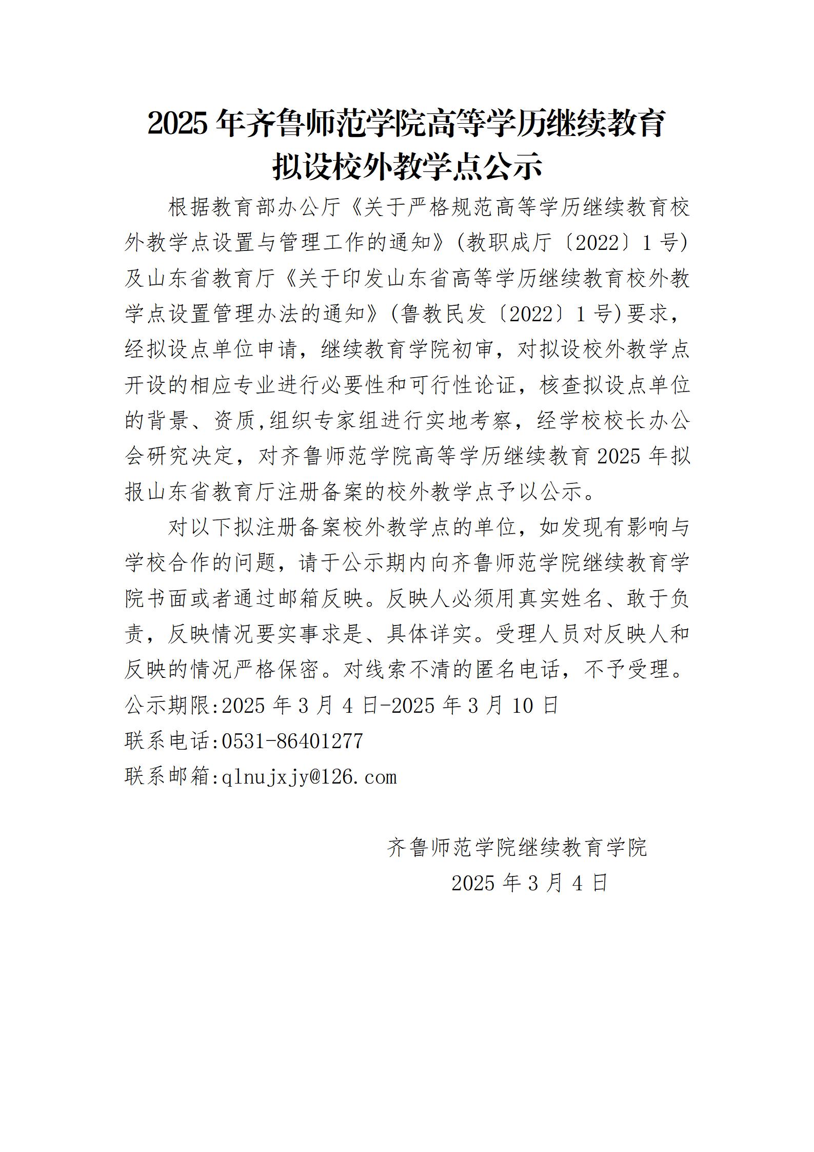 2025年齐鲁师范学院高等学历继续教育拟设校外教学点公示.pdf
